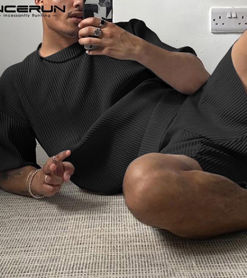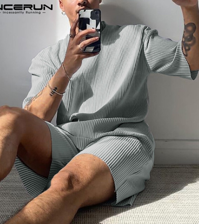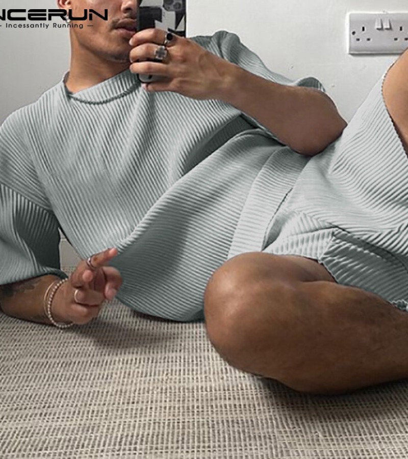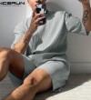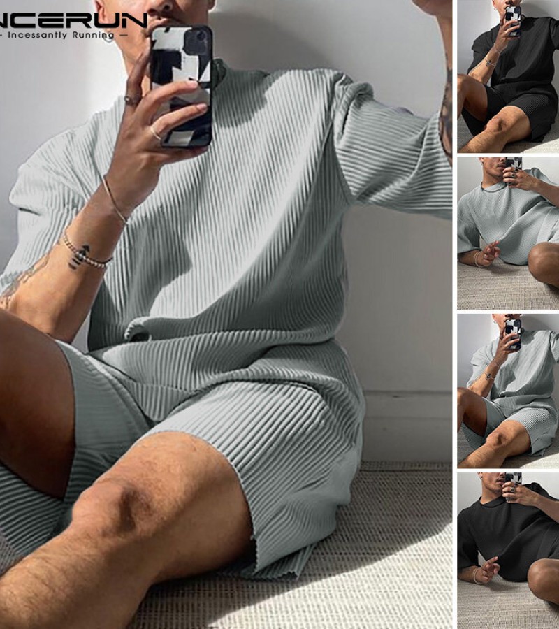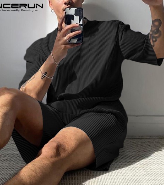 INCERUN男式短裤运动套装短袖T恤和短裤Loungwear健身房运动套装套装(西式)