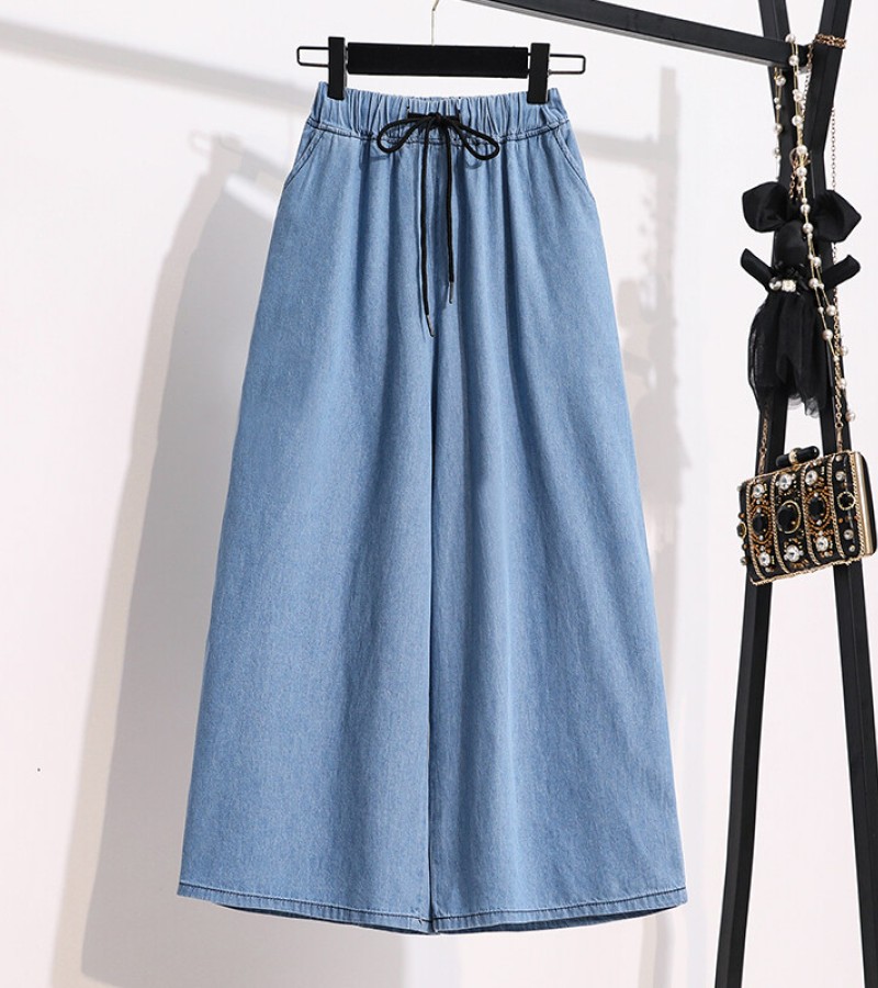 Plus Size Elastic Waist Thin Casual Summer 7 Points Denim Capri Pants Cropped Jeans for Women S M L XL XXL XXXL 4XL 5XL