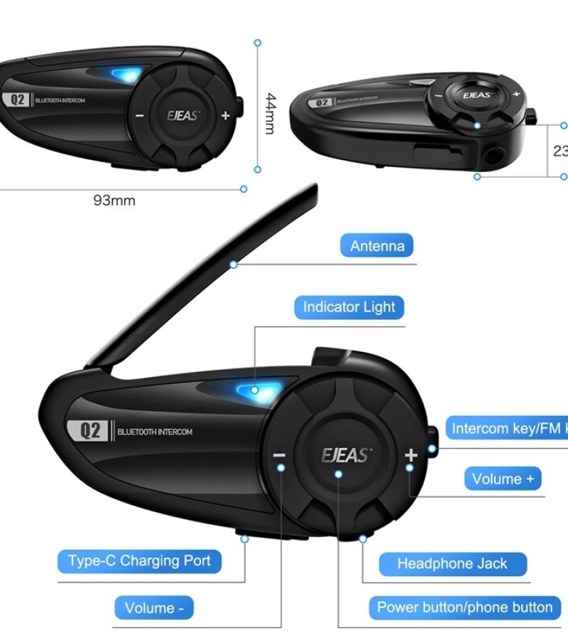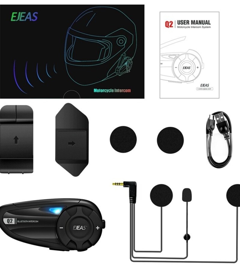 EJEAS Q2 Motorcycle Helmet Bluetooth Intercom Headset, 2-rider talk in real time, Bluetooth 5.1 Waterproof 1 Pack