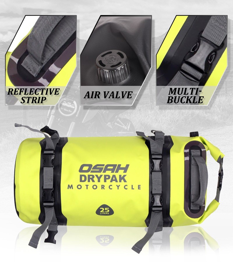 OSAH DRYPAK Motorcycle PVC Tail Bag Motorbike Motocross Waterproof Dry Luggage Outdoor Roll Pack Saddle Rear Seat Bag