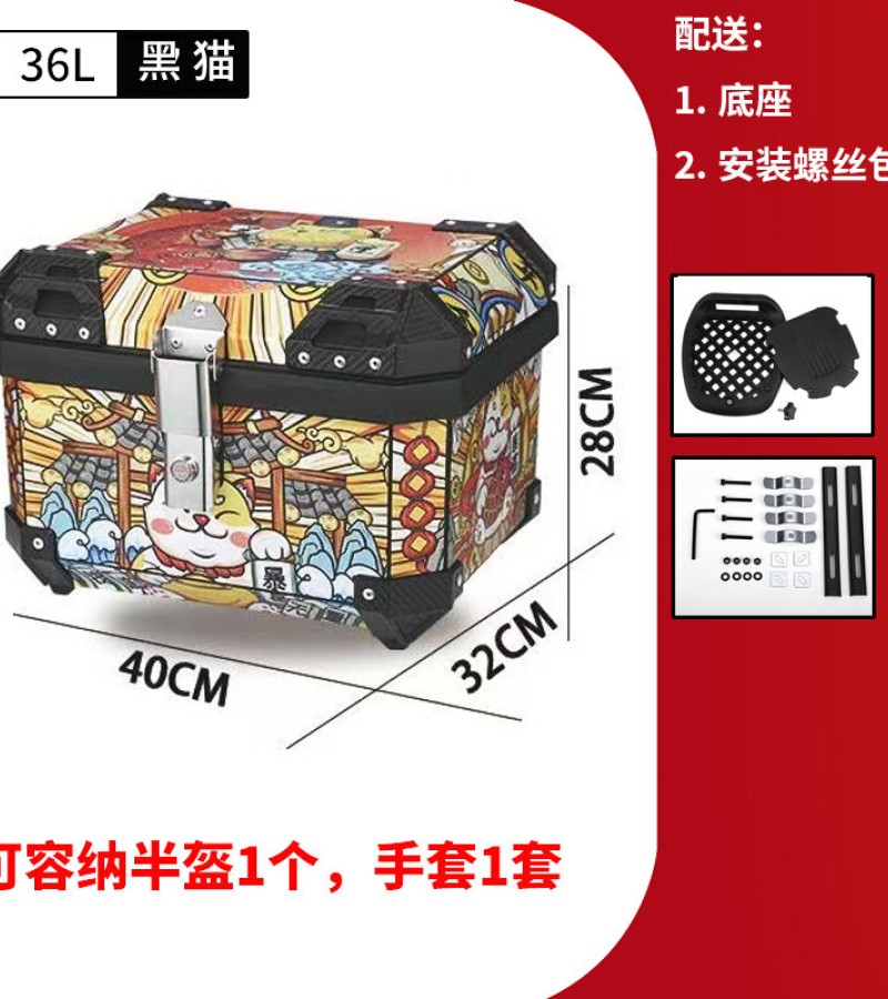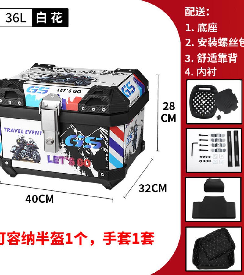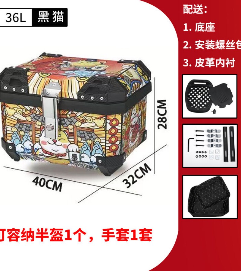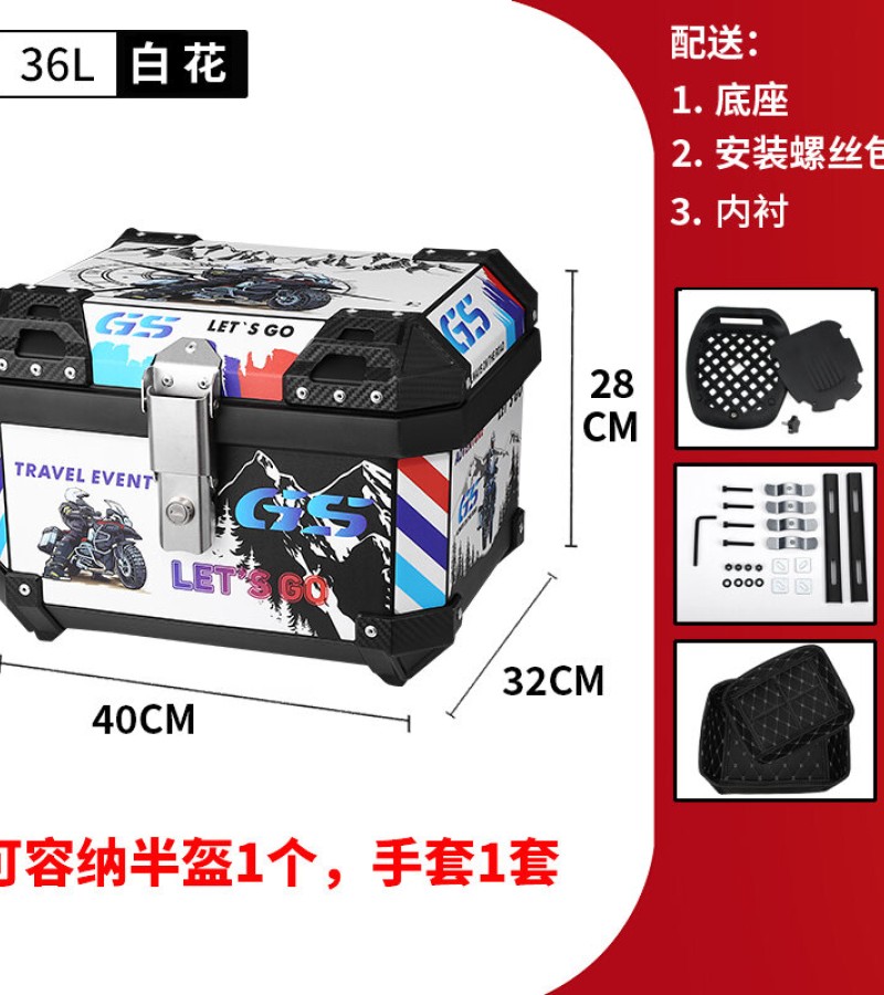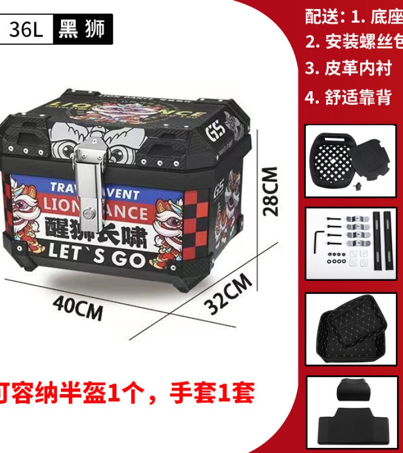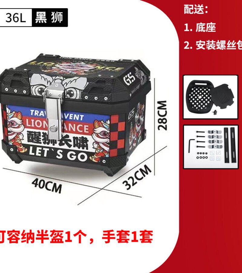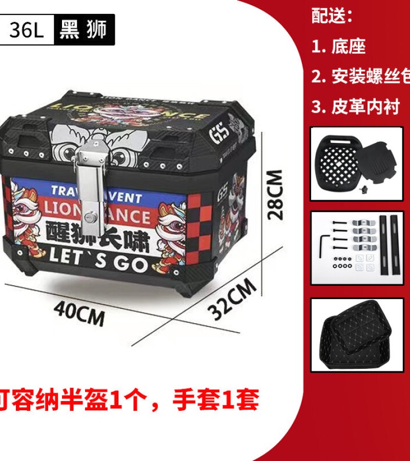 ABS Tail Box 45l Large Capacity Motorcycle Scooter Electric Vehicle Toolbox Quick Release Large Non-Aluminum Alloy Tail Box