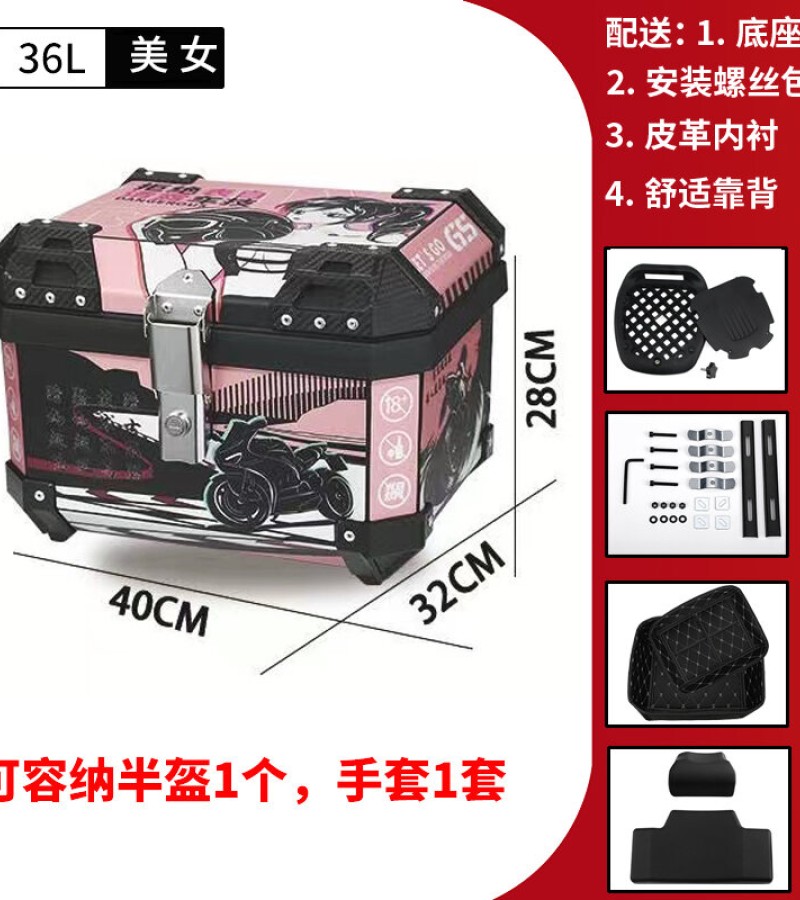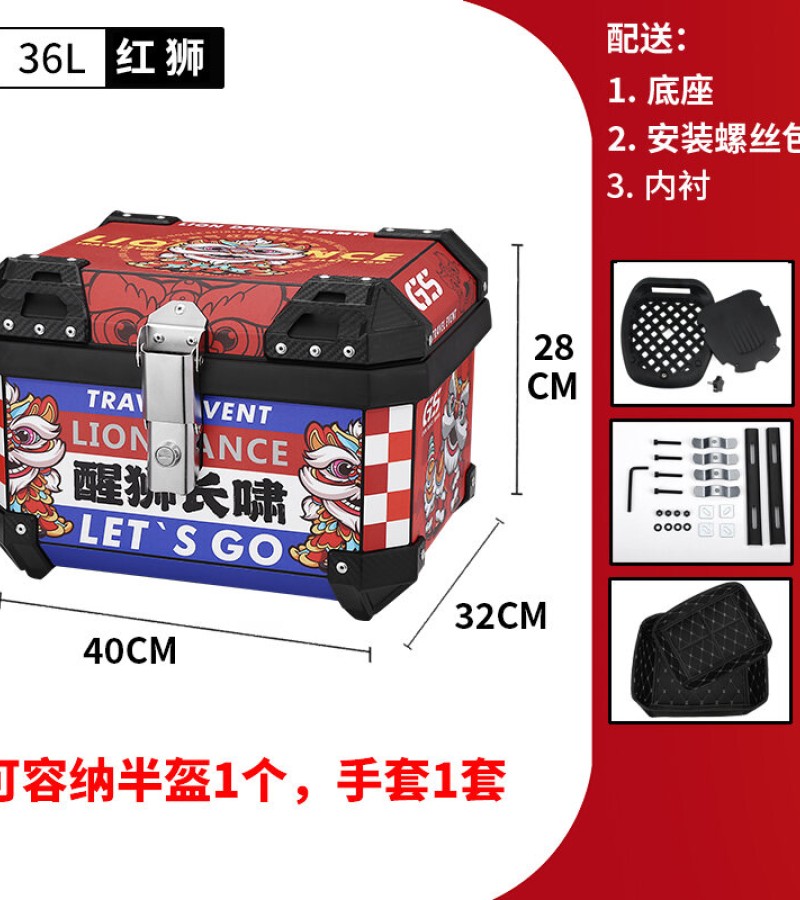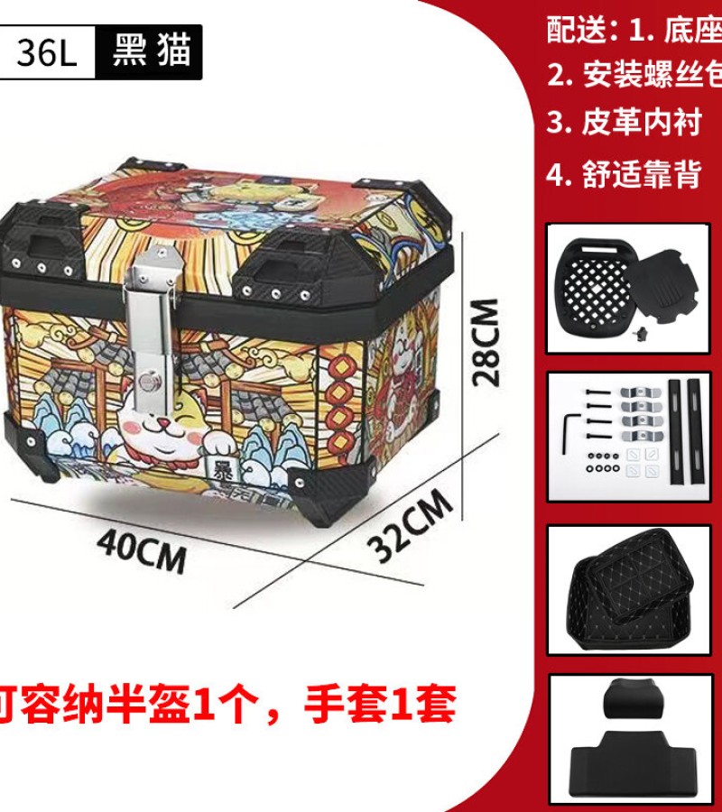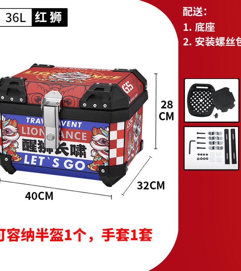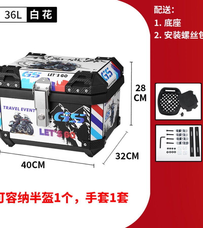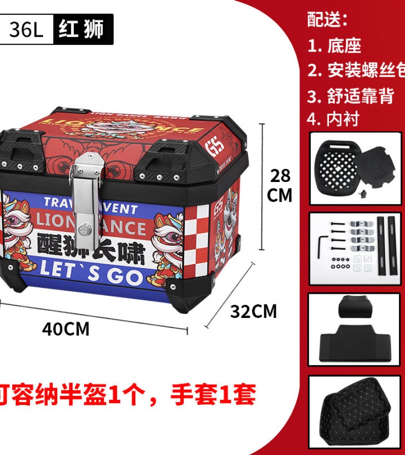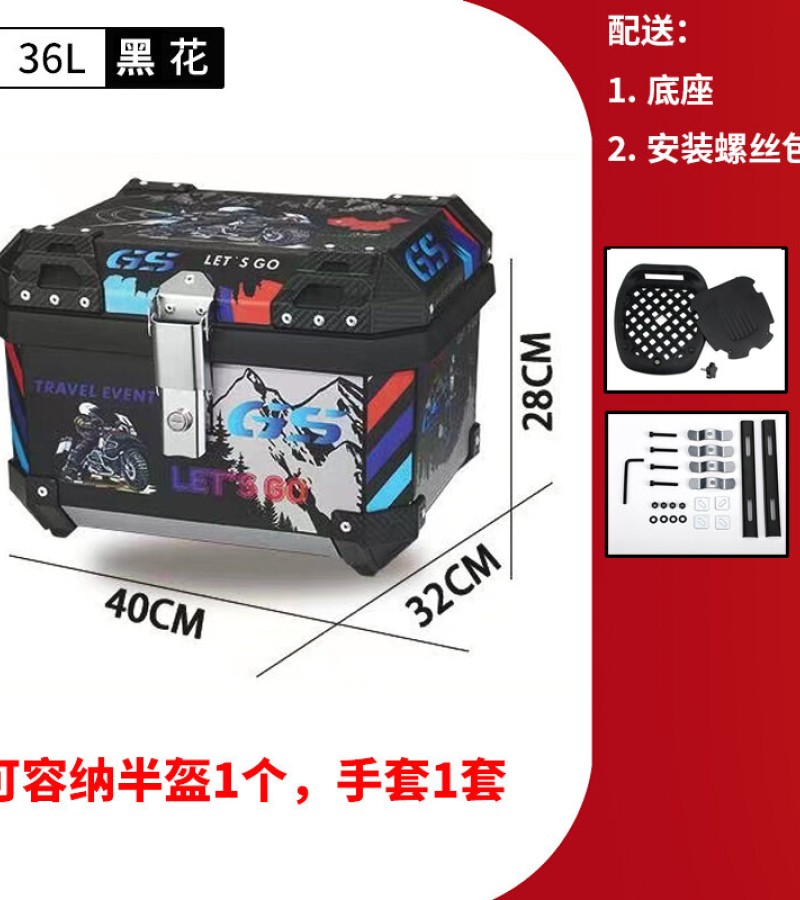ABS Tail Box 45l Large Capacity Motorcycle Scooter Electric Vehicle Toolbox Quick Release Large Non-Aluminum Alloy Tail Box