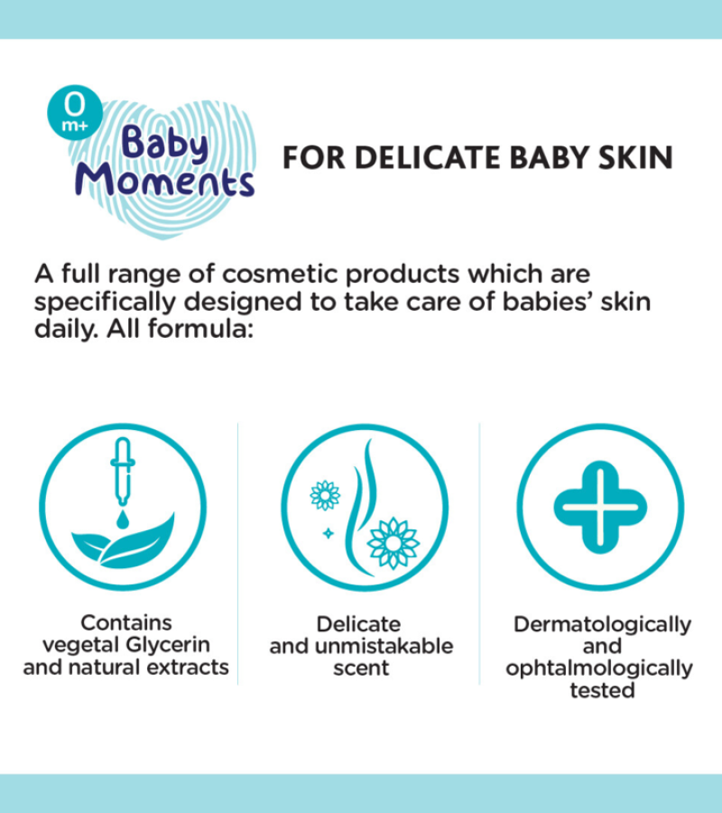• Moisturises baby’s skin, making it wonderfully smooth and soft
