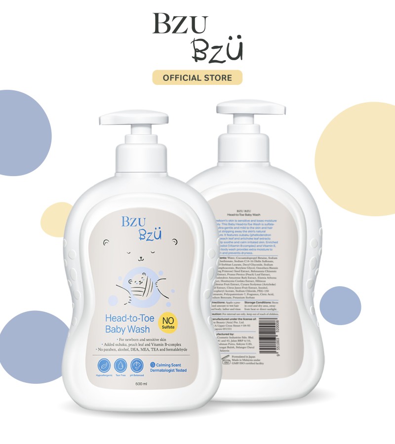 BzuBzu Head to Toe Baby Wash and Shampoo, 600ml | Designed for Newborn & Sensitive Skin