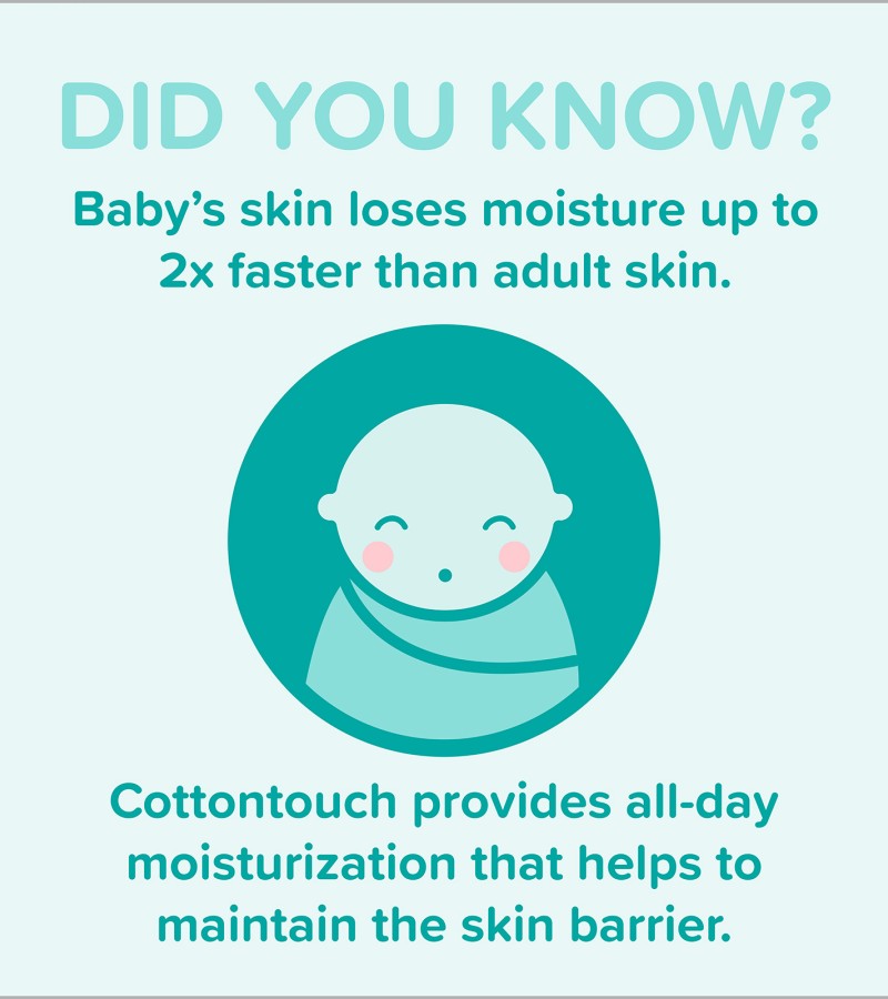 Unique water-based lotion blended with natural cotton so its gentle for newborn's sensitive skin