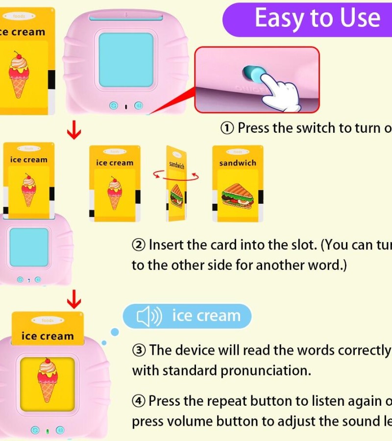 Specially Designed for Toddlers, The machine is so small and light that kids use it conveniently. Kids can put the machine in their small bag, and they can learn and play anytime, anywhere.