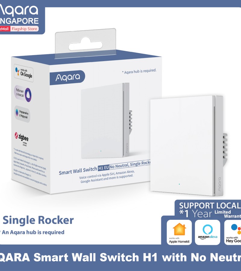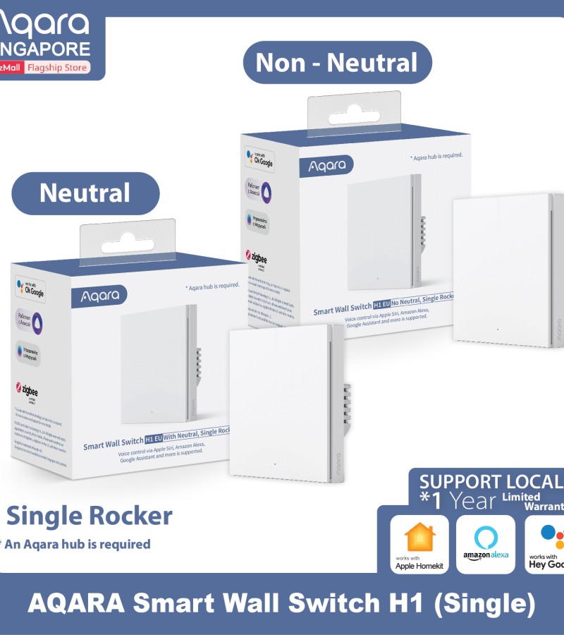 AQARA智能墙壁开关H1 EU(单帮/摇杆),支持苹果HomeKit、Alexa、谷歌(智能电灯开关)