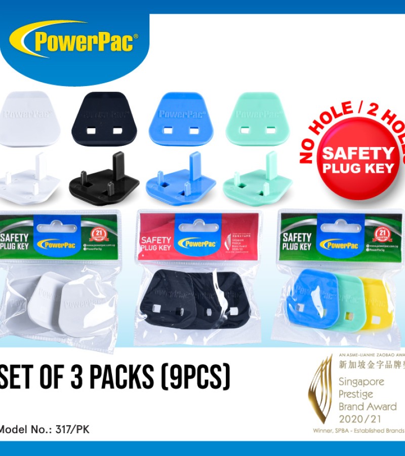 PowerPac 3X插座插头钥匙2针对3针英国/儿童婴儿安全新加坡插座插头盖保护器(PK/317)