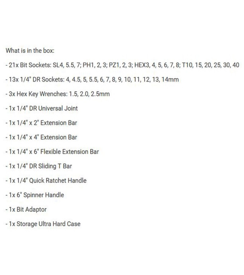 This set consists of Ratchet Wrench Hex Torx bits universal joint socket adapters flexible extension