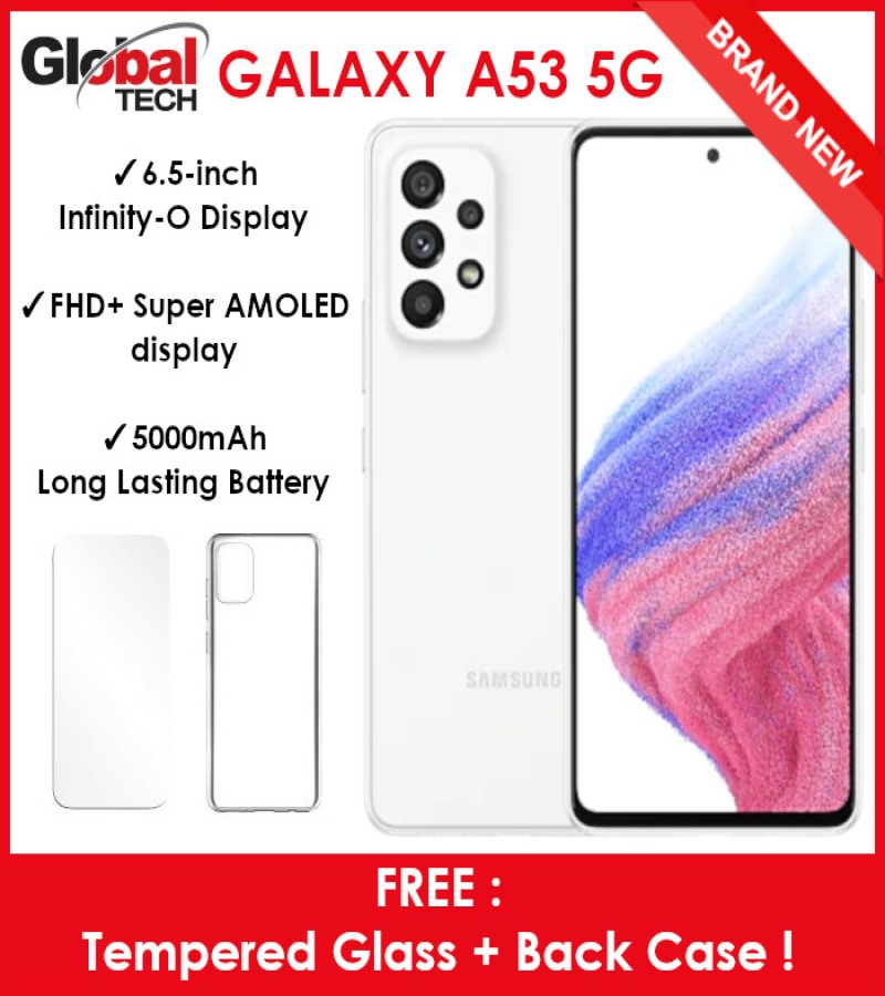 Samsung Galaxy A53 5G 128GB or 256GB (FREE : TEMPERED GLASS + BACK CASE)