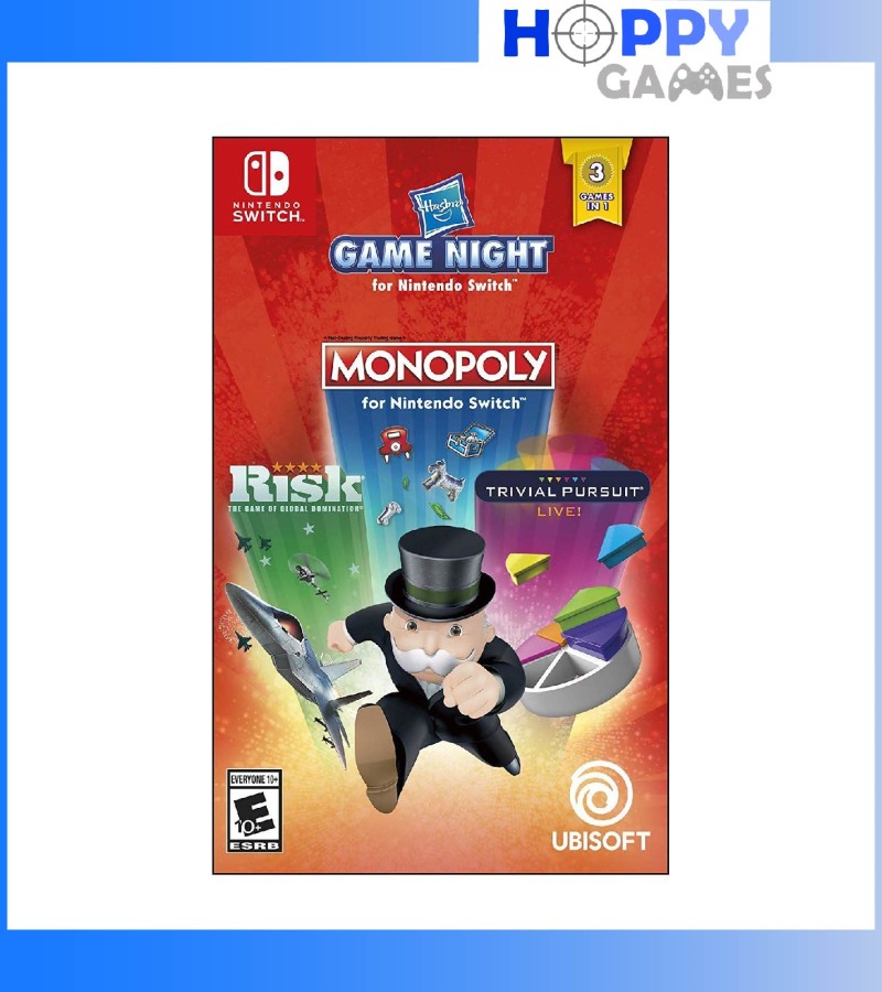 Play MONOPOLY, TRIVIAL PURSUIT LIVE!, and RISK anytime, anywhere. Challenge family, friends, and players around the world. Choose your favorite game mode and enjoy hours of fun with Hasbro Game Night for Nintendo Switch™!