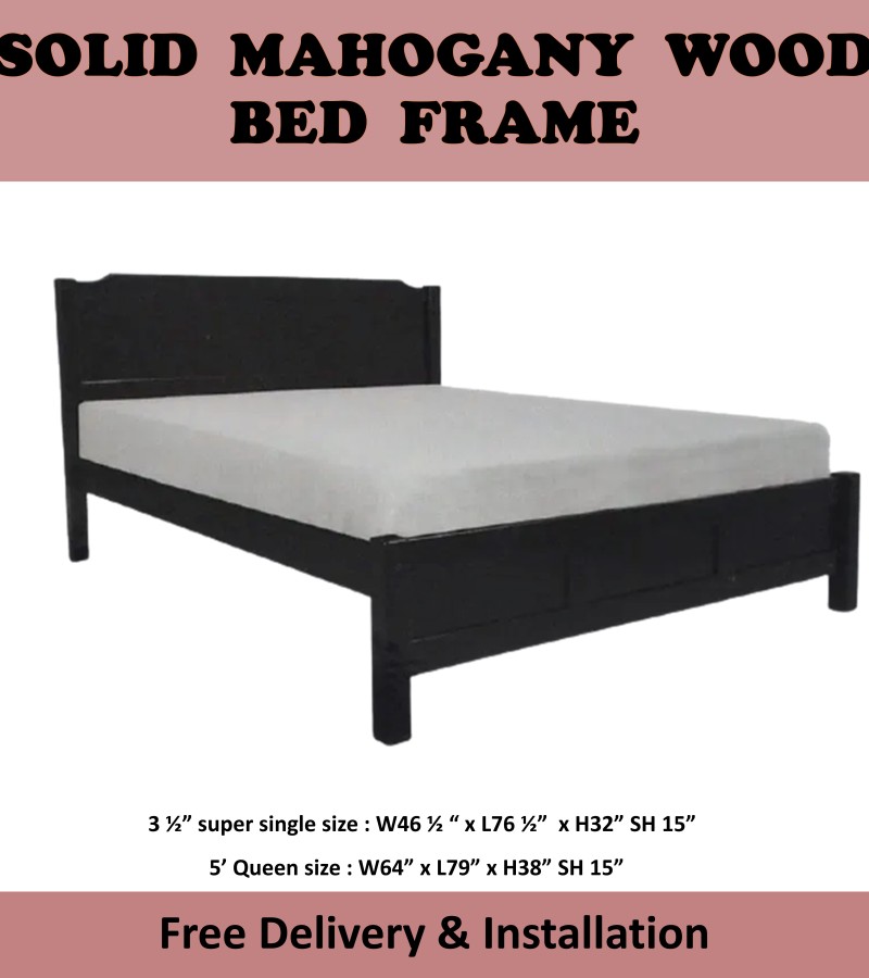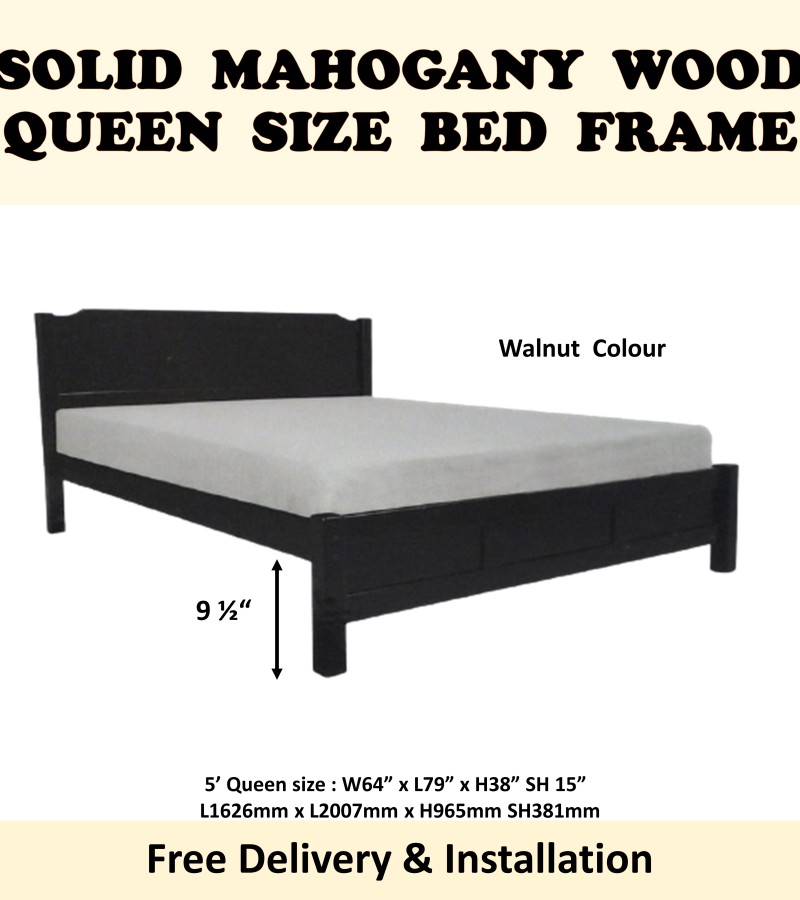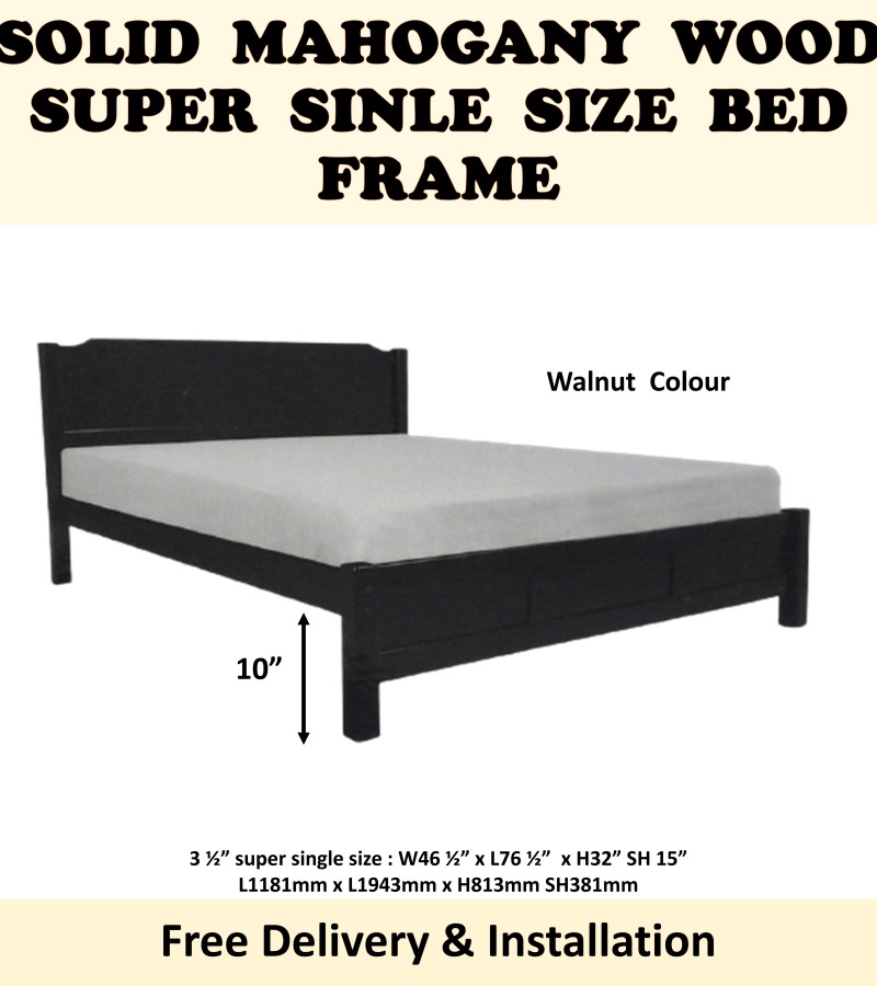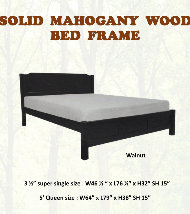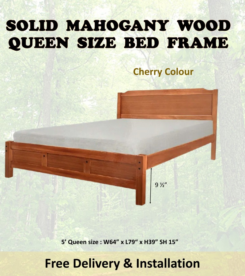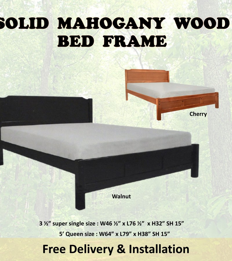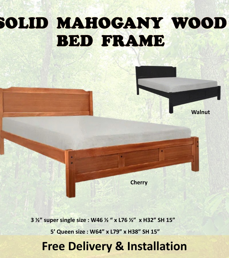 HANNA桃花心木实木超单/大号床架,樱桃木和胡桃木色