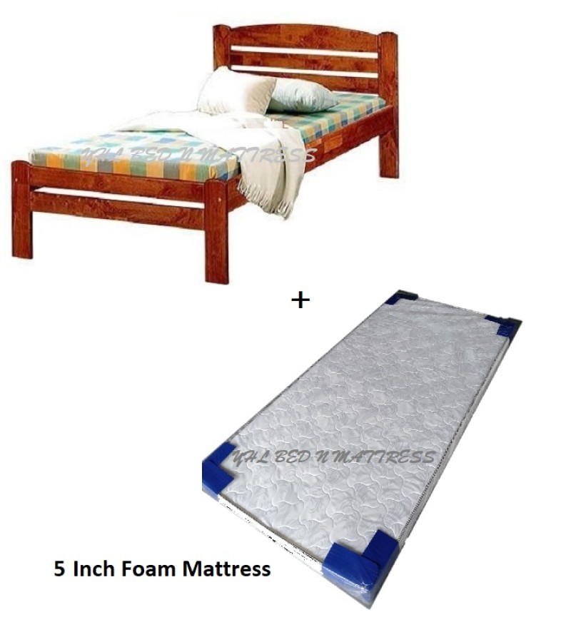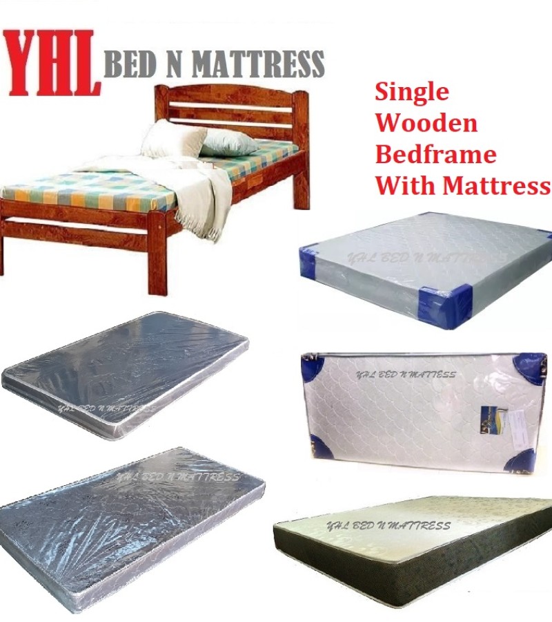 YHL Elsa Solid Wooden Single Bed Frame With Mattress
