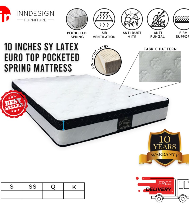 [COMBO套装]10英寸袋装弹簧,带乳胶床垫+床架(10年保修)[所有尺寸可选]