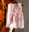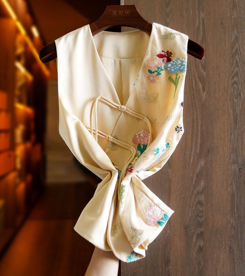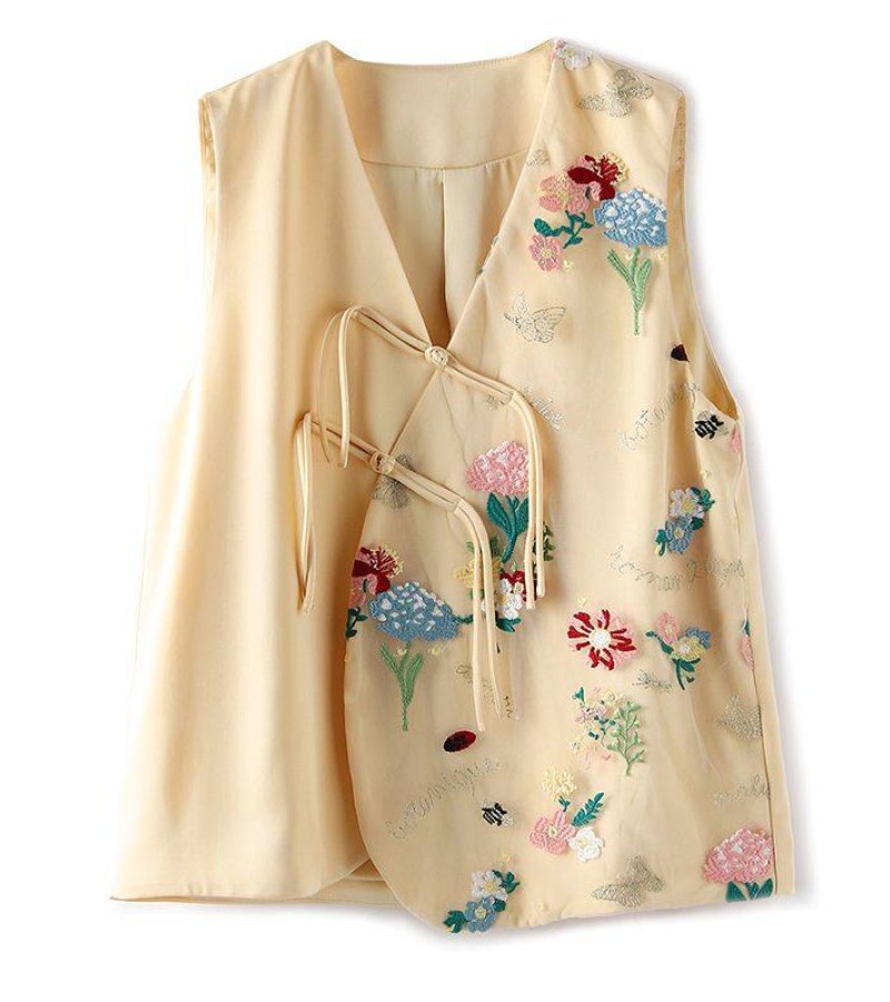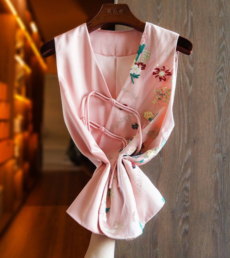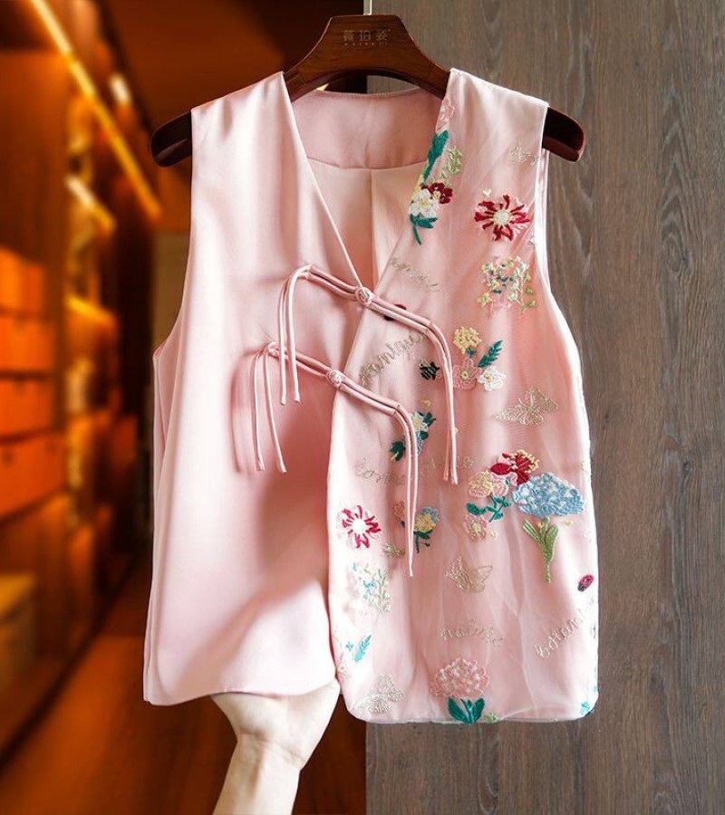 Joso Apricot Pink Senior Sense of Summer Chinese Vest Women Summer Suit Original Design Mesh Embroidery Country Tide Wind Plate Buckle Top