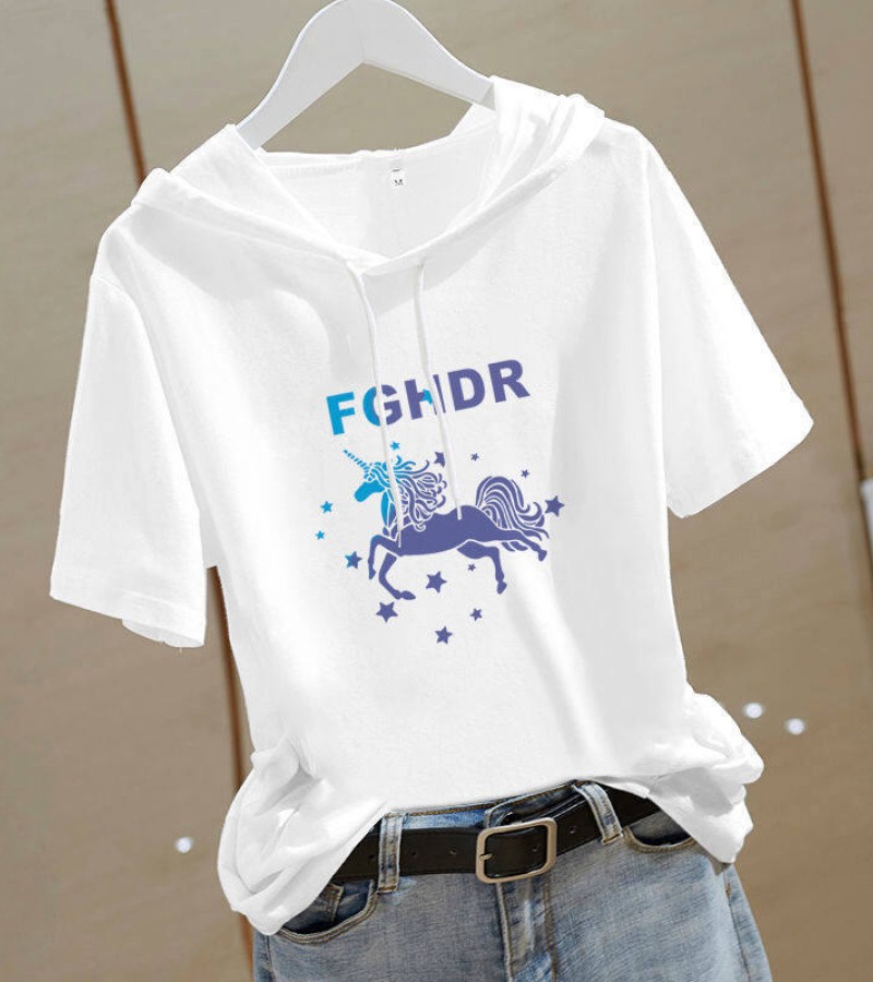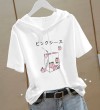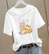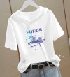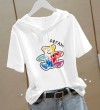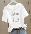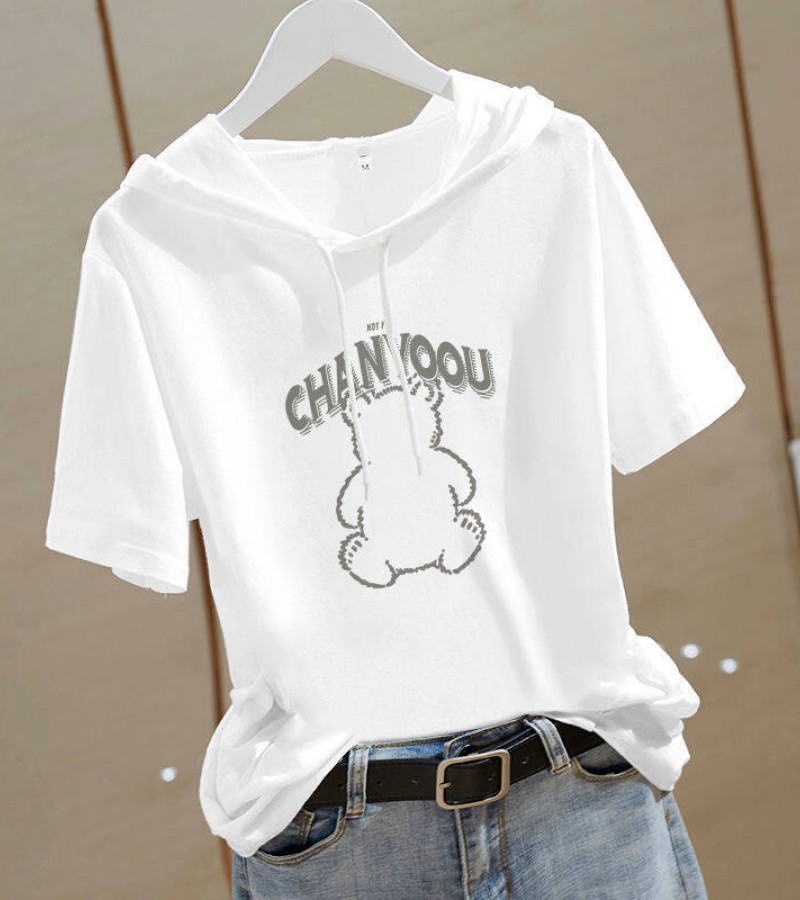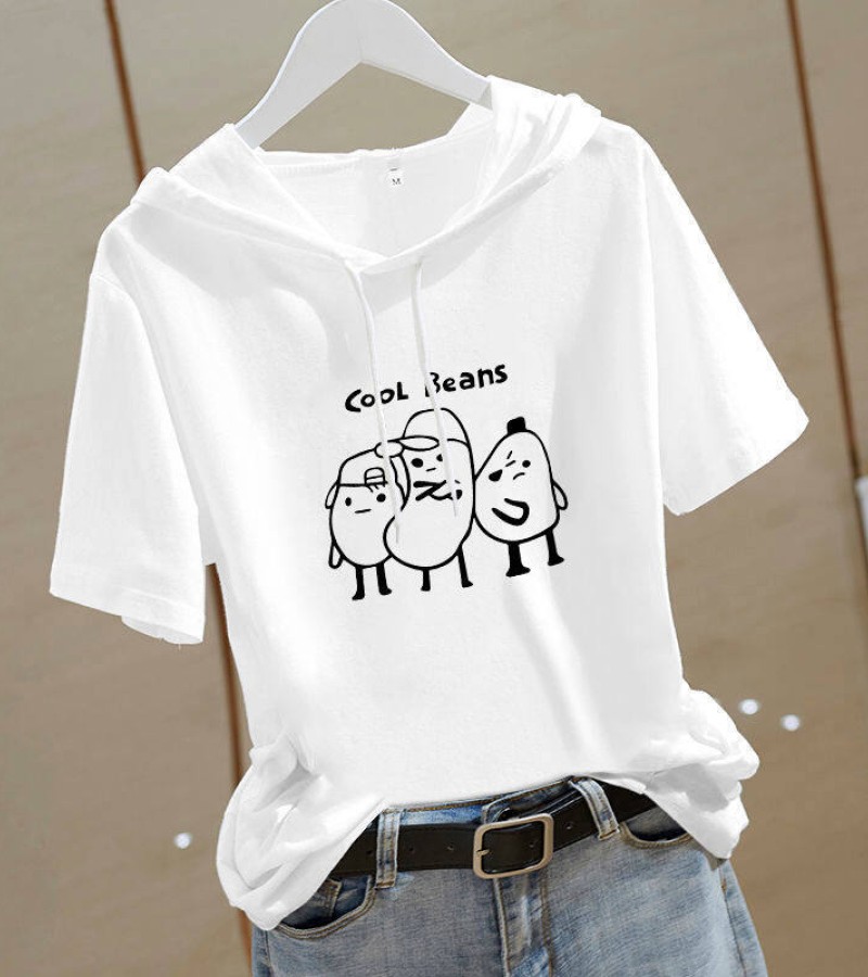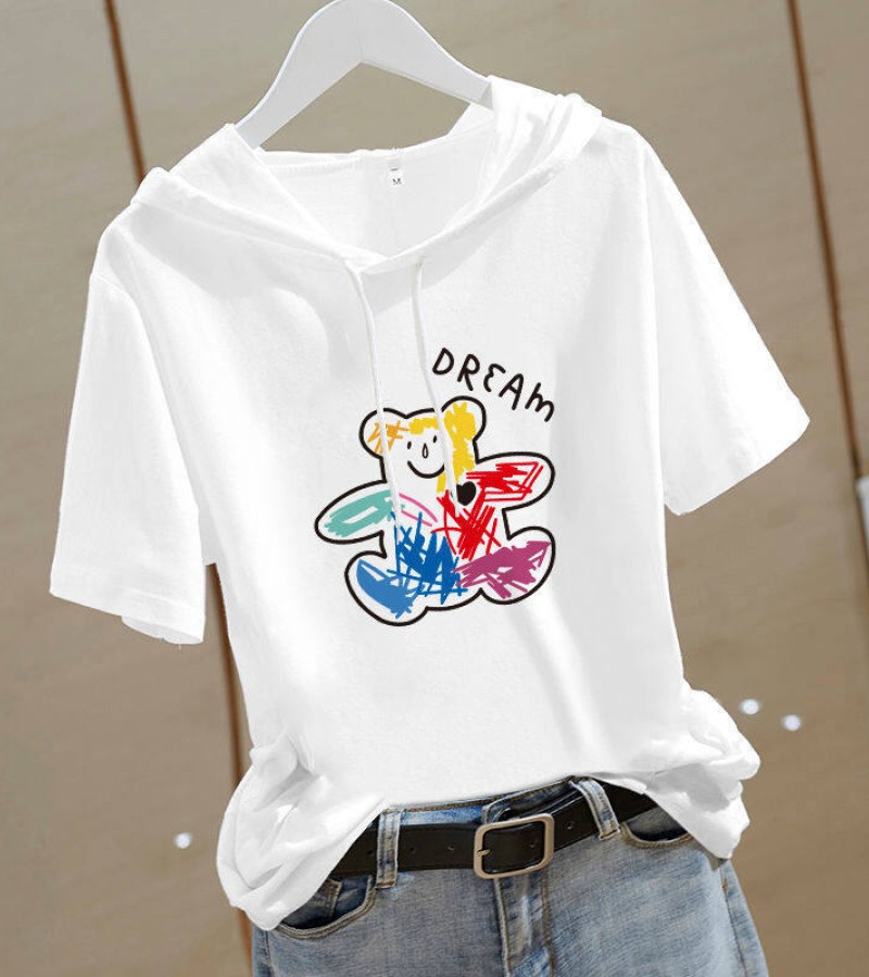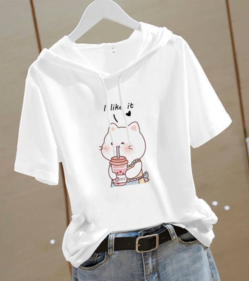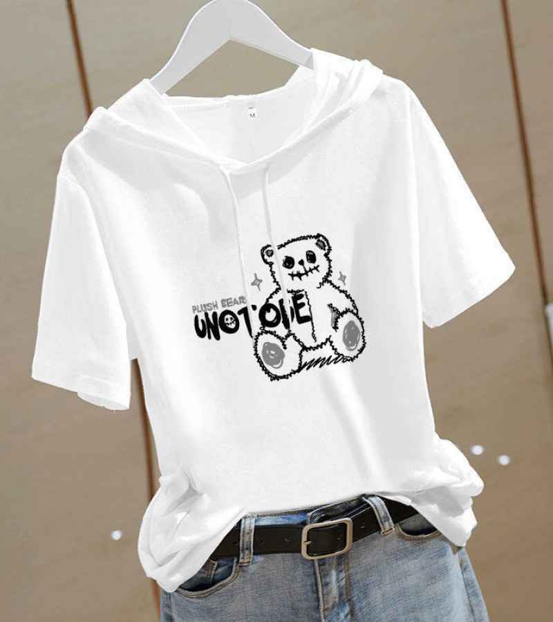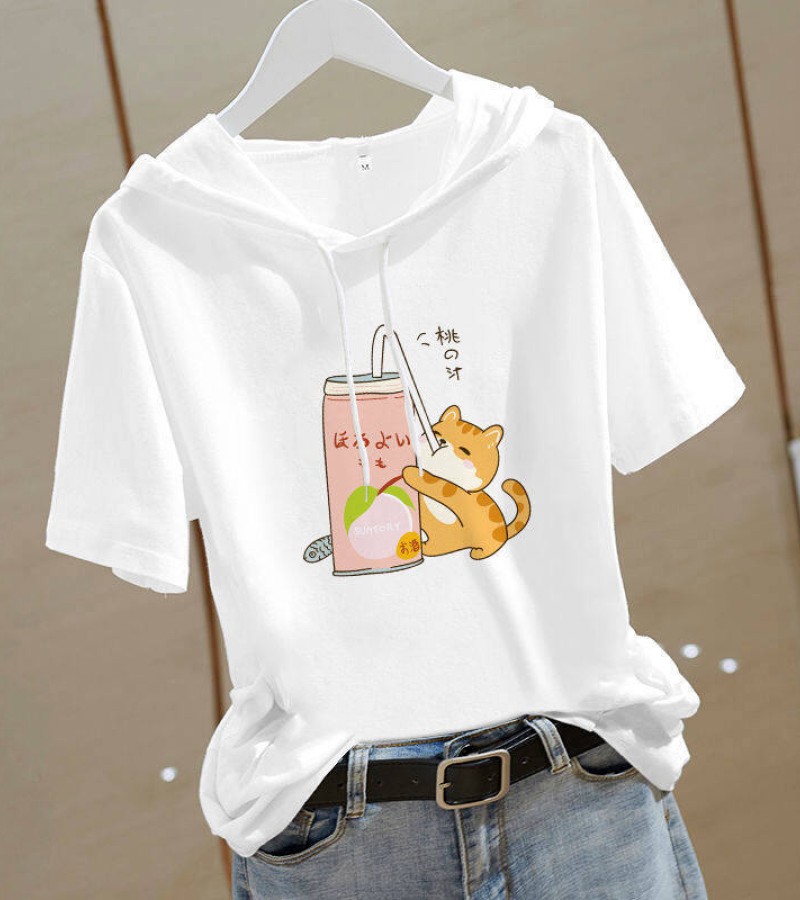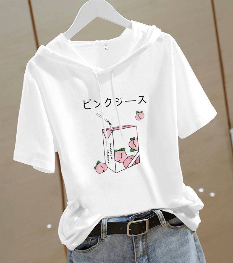 韩国上衣女士印花女士T恤宽松短袖休闲上衣女士衬衫女士时尚上衣夏季女士白色上衣短袖连帽衫