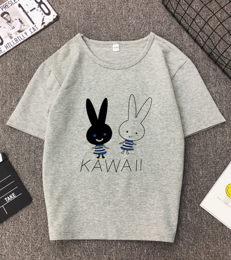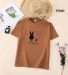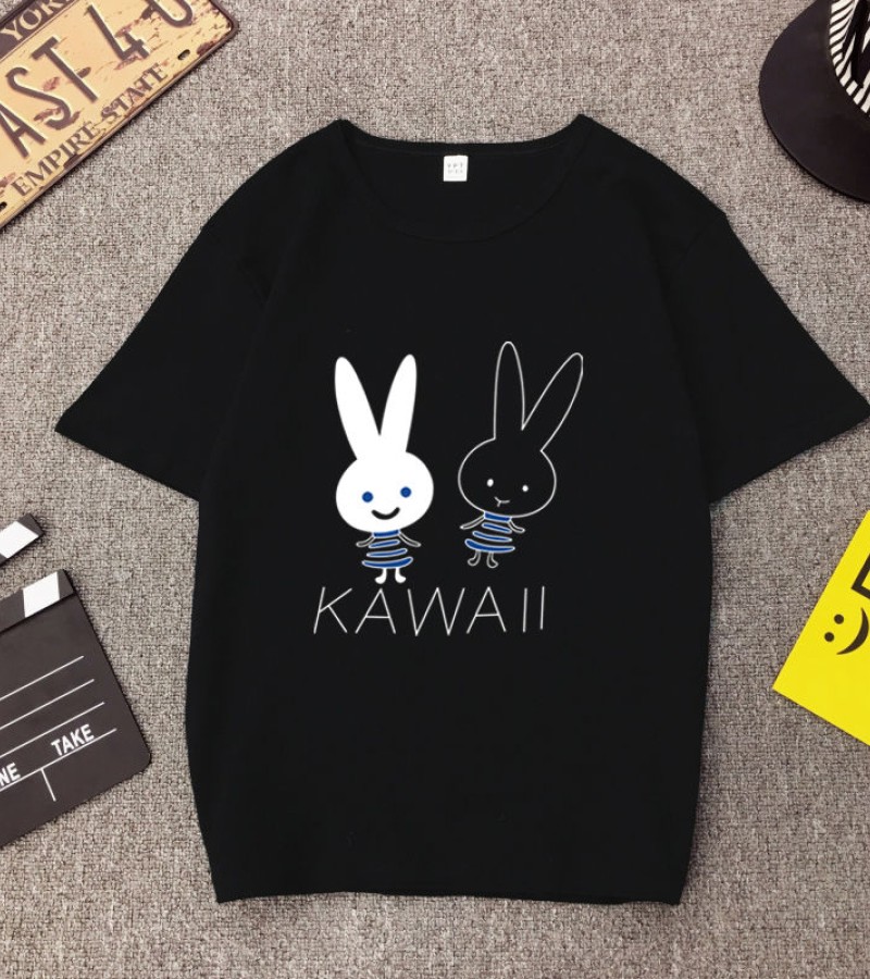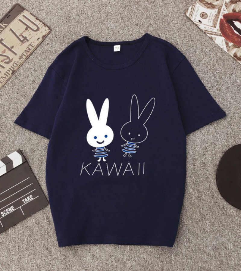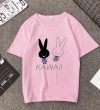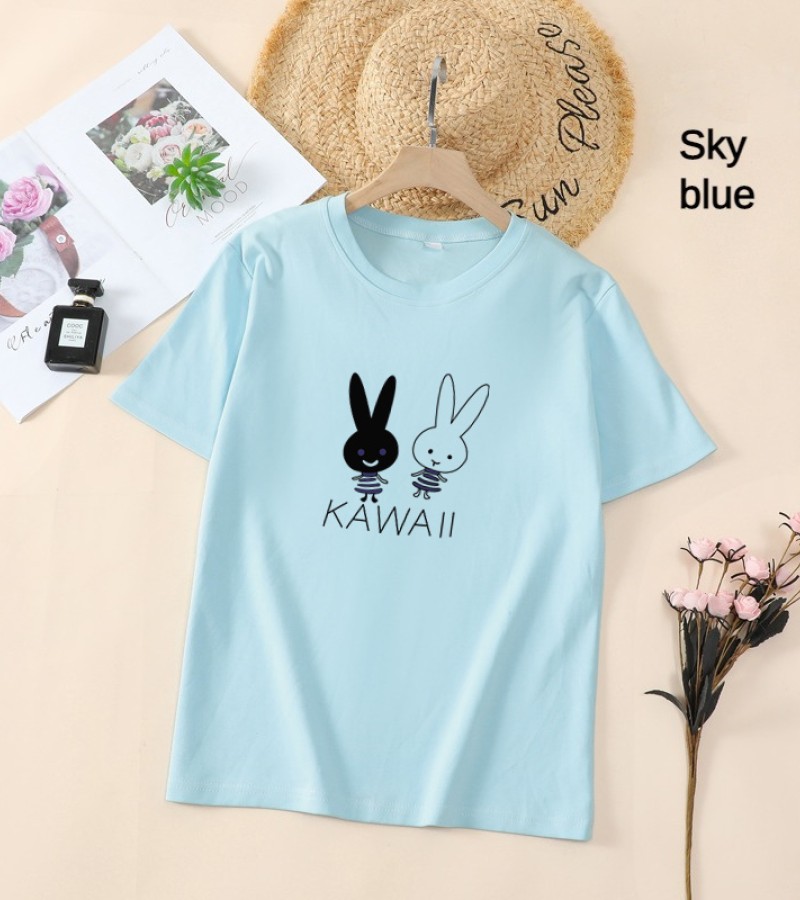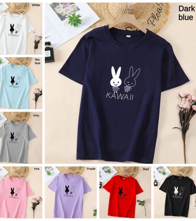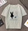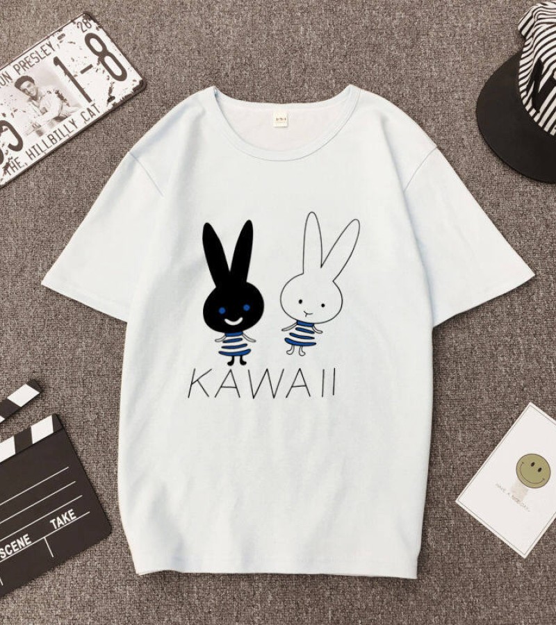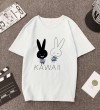 白色T恤女士优雅短袖T恤卡通兔印花圆领T恤轻便女士T恤