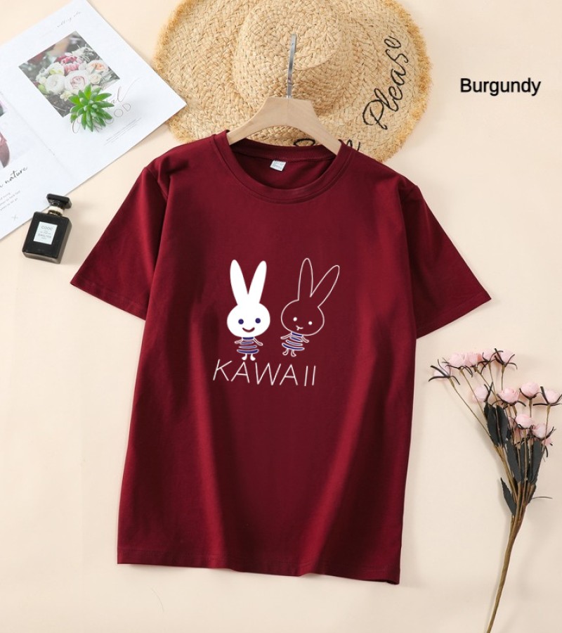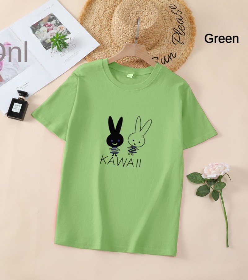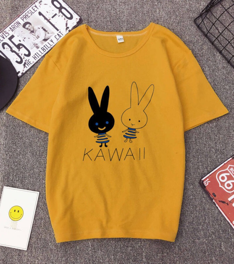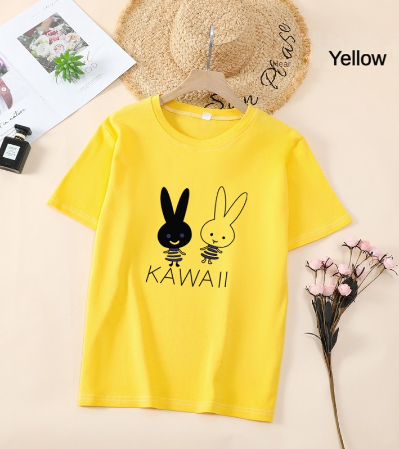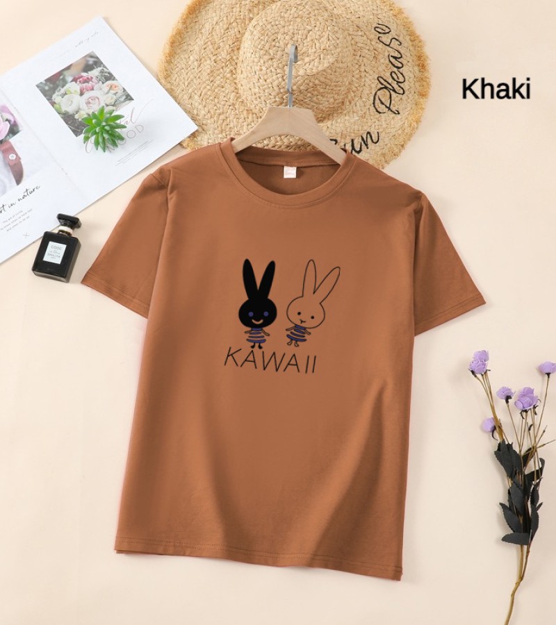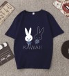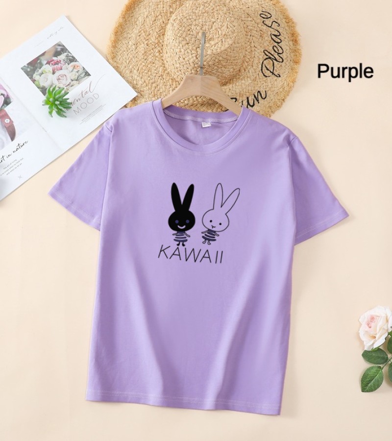 白色T恤女士优雅短袖T恤卡通兔印花圆领T恤轻便女士T恤