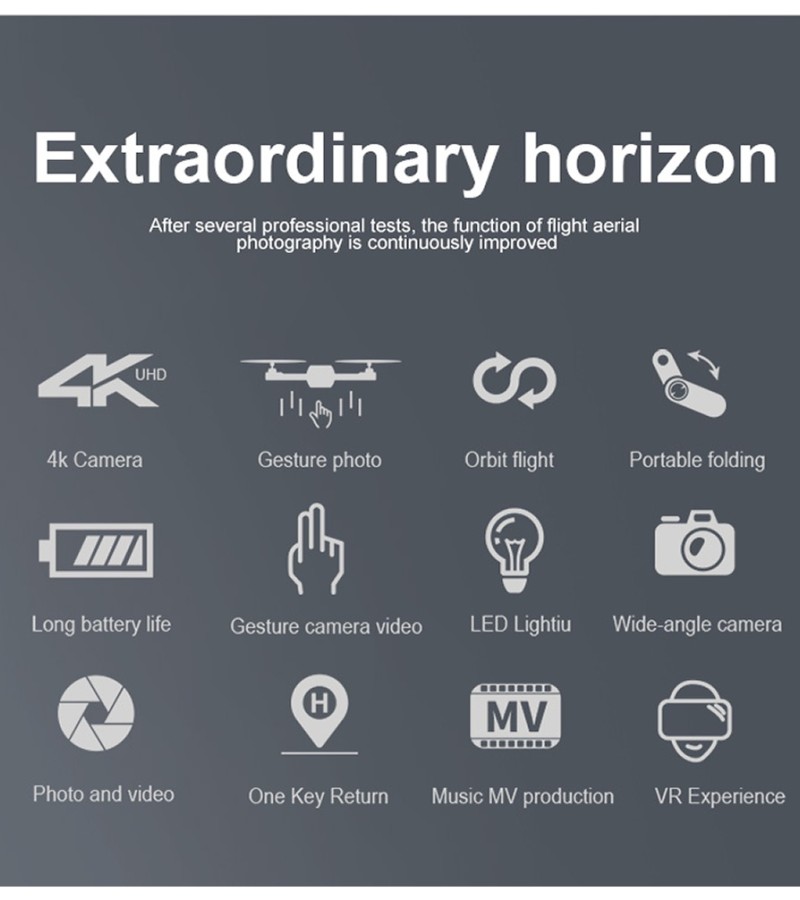 This drone quadcopter in small size, with foldable arms, easily fit in your pocket and easy to carry. You do not have to constantly worry about the drones stability and can concentrate on capturing your image better. Support One Key Automatic Return, with one click, the drone will return to its point, no matter where it was flying.