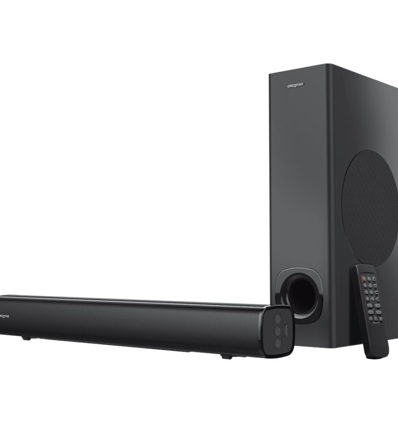 Creative Stage-2.1声道监听音箱,带低音炮,适用于电视、电脑和超宽显示器,蓝牙/光学输入/TV ARC/AUX输入,遥控器和壁挂套件