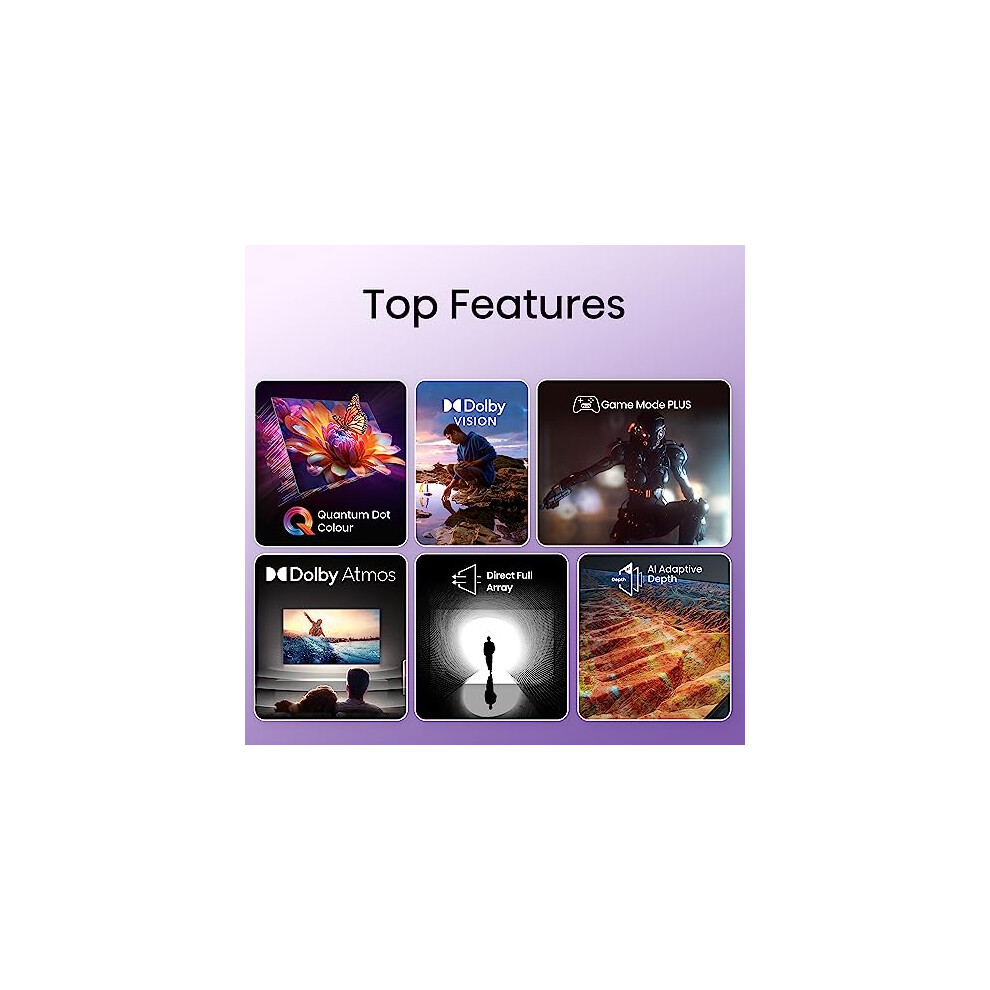 Hisense 50 Inch QLED Smart TV 50E77KQTUK - Quantum Dot Colour, 60Hz VRR, Dolby Vision, Bluetooth&HDMI, Share to TV, and Youtube, Freeview Play, Description