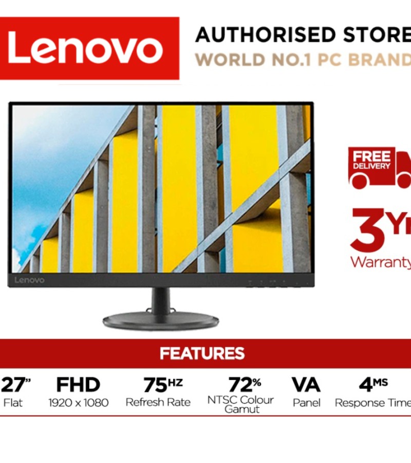 [BEST SELLER] Lenovo D27-30 27 Inch FHD 1920x1080 Monitor (66B8KAC6MY) 250nits | 72% NTSC 82 dpi | 4ms Response Rate | HDMI VGA Multiple Input | HDMI Cable Incl | 3Y Warranty
